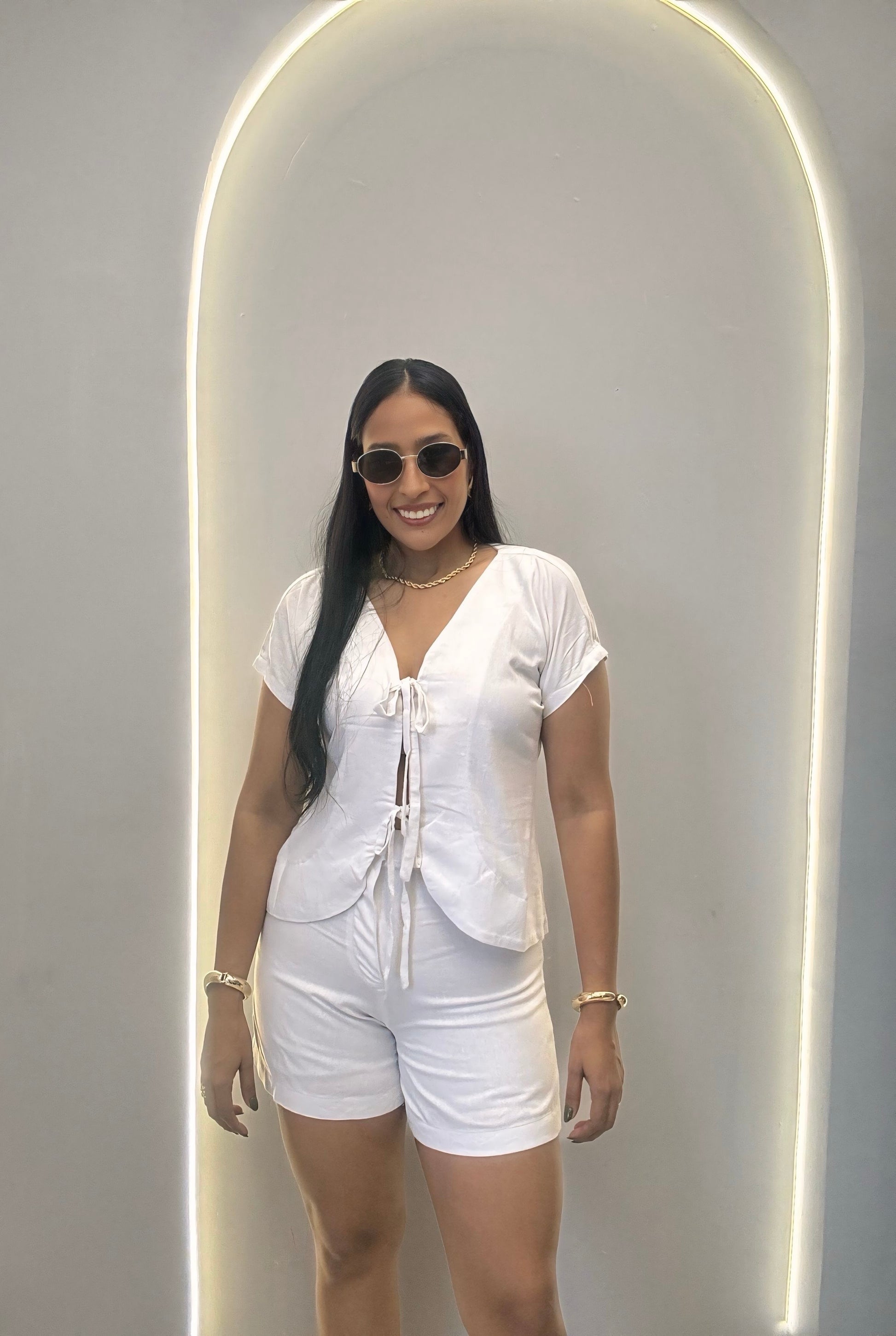Este set elaborado en lino destaca por su frescura y elegancia natural. Su caída ligera y textura suave le dan un toque sutil y sofisticado, perfecto para lucir con estilo y comodidad en cualquier ocasión.